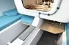 Fire XL-køyer er den viktigste innredningen under dekk. De store køyene har fått plass gjennom et smart system med skyvedører. Lagringsplassen er ivaretatt gjennom det samme smarte bag-systemet som i Seascape 27. I tillegg er det selvsagt gjort plass for Porta Potti og nødvendig batterikapasitet.
